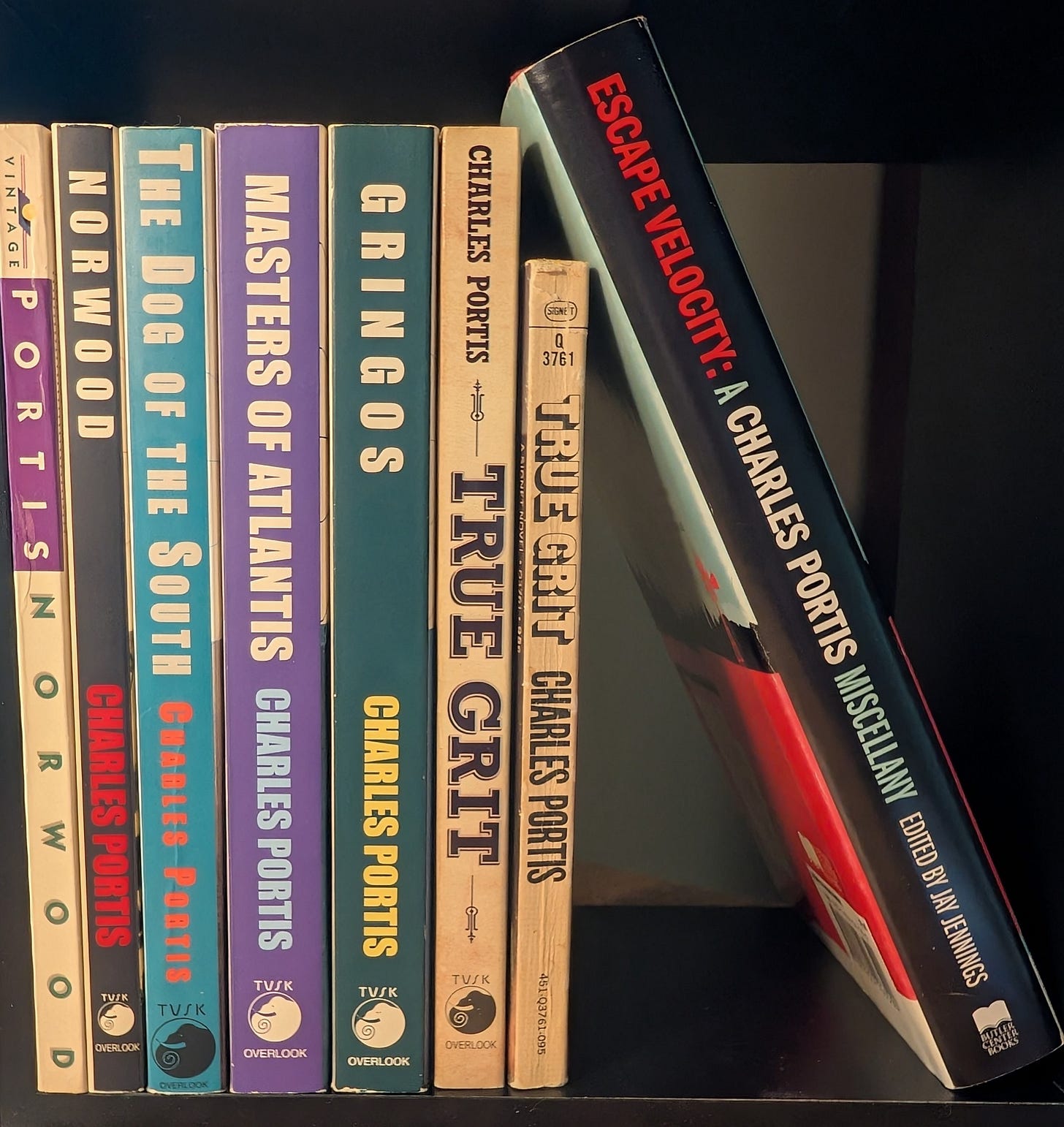 All five novels, of course: NORWOOD, TRUE GRIT, THE DOG OF THE SOUTH, MASTERS OF ATLANTIS, and GRINGOS.