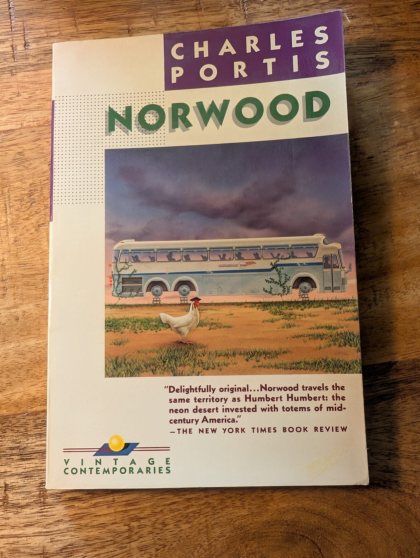 Portis went on to bigger things, as they say. As a newspaperman with the New York Herald Tribune, he covered the civil rights movement in his native South and later became the paper’s London bureau chief; as an author, he wrote some of the best comic novels you could hope to read. TRUE GRIT is the most famous, but start with NORWOOD, his first, the one with the college-educated chicken. My favorite is the picaresque DOG OF THE SOUTH, where the narrator, Ray Midge, tells us about all the interesting things he sees out on the road: